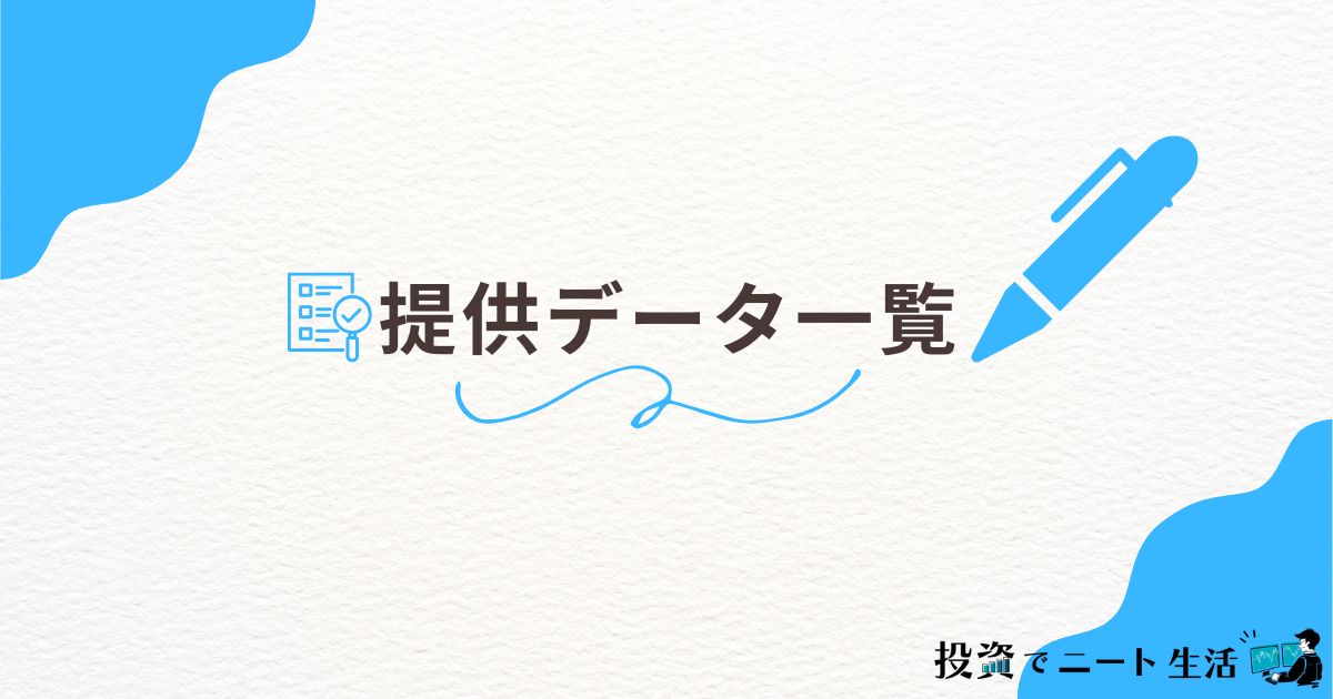 このページでは、「投資でニート生活」で提供しているデータセットとレポートの一覧 をまとめています。