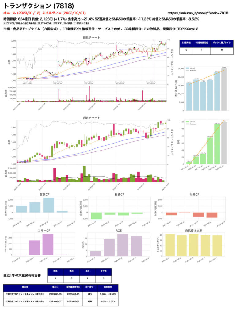 チャートや業績など、投資判断に必要な情報をまとめています。